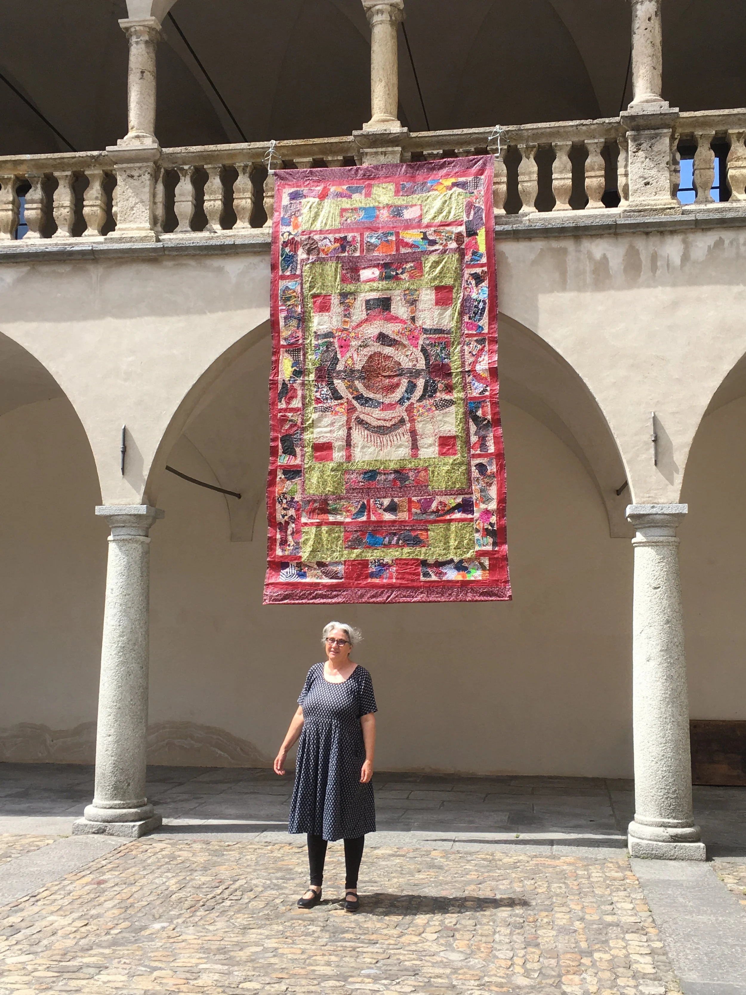 Im Atelier schnitt ich sie zurecht und stickte in öffentlichen Parks und Gärten während Stunden daran. Oft fragte mich jemand was ich mache und setzte sich dazu, denn textilen Kulturtechniken wirken auf viele verbindend, kommunikativ.